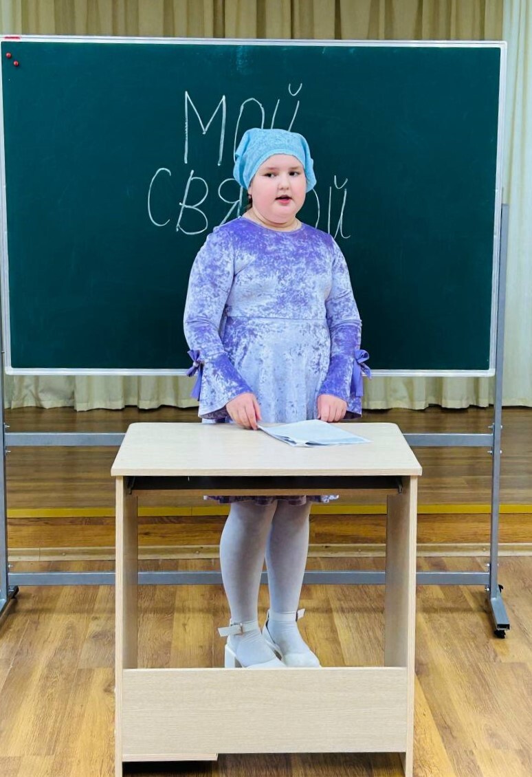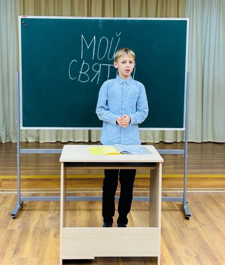 Каждую субботу октября в воскресной школе храма Успения Пресвятой Богородицы в Александрове (Щапово) проходили защиты рефератов учеников 5-го класса на тему "Мой Святой".