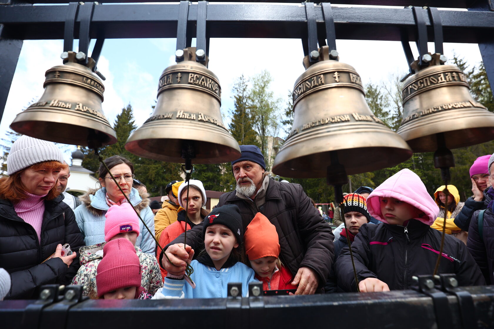 Каждый желающий смог попробовать себя в роли звонарей на переносной звоннице перед храмом, которая была специально привезена на время фестиваля.
