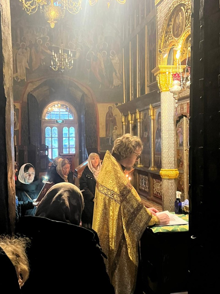 После прогулки в промозглую погоду вся группа собралась в монастырской трапезной, чтобы подкрепиться и перевести дух. Набравшись сил, паломники продолжили знакомство с обителью.