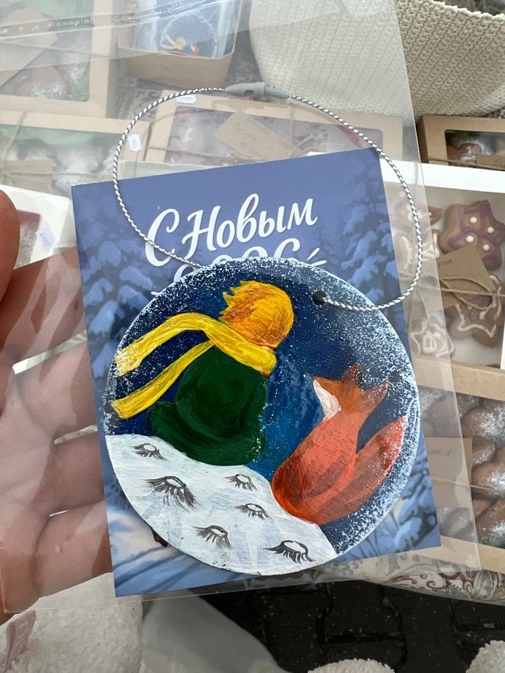 На ярмарочных столах было разложено то, что с такой любовью сделали дети и родители: имбирные пряники, фонарики, вязаные снежинки, мыло ручной работы, необычные открытки, игрушки из дерева, подарочные коробочки с сюрпризом, ангелы из ниток и снеговички.