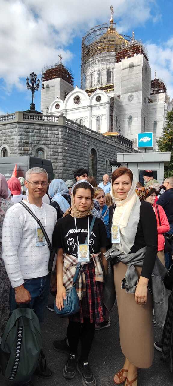 После ранней Литургии, прихожане во главе с настоятелем протоиереем Алексием Зарубиным и клириком храма иереем Сергием Чистяковым отправились к Храму Христа Спасителя.