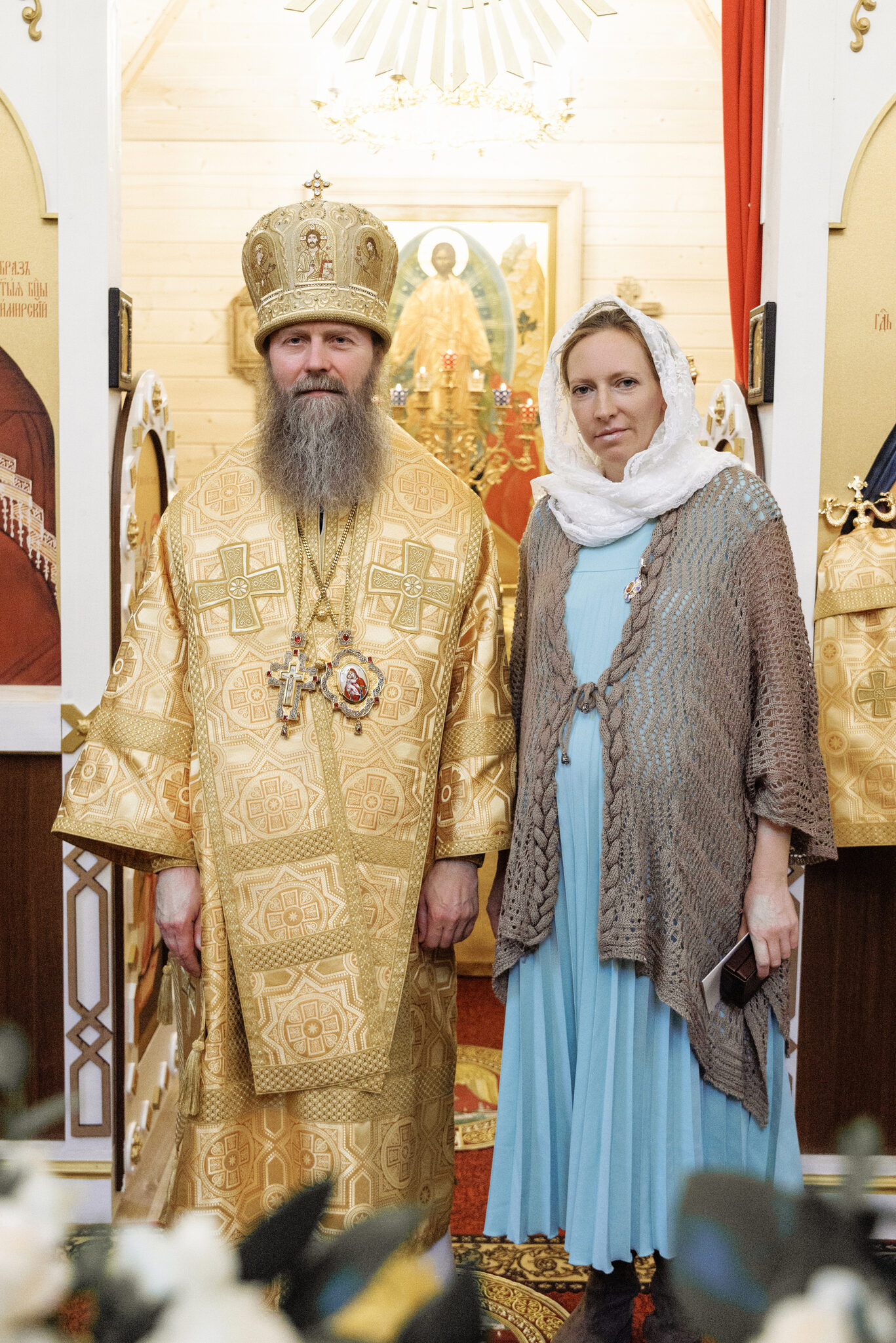 супруге и.о. настоятеля Патриаршего подворья Соловьёвой Елене Викентьевне Его Преосвященство вручил Патриарший знак материнства в благословение за чадородие и жертвенное материнское служение.