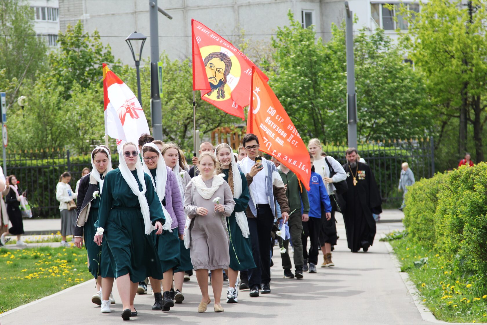 По окончании Литургии все были приглашены на торжественное построение у мемориала «Единая страна – Единый народ» на территории парка Мосрентген, где состоялся благодарственный молебен в честь Дня Победы и поминовение всех павших в годы Великой Отечественной войны.