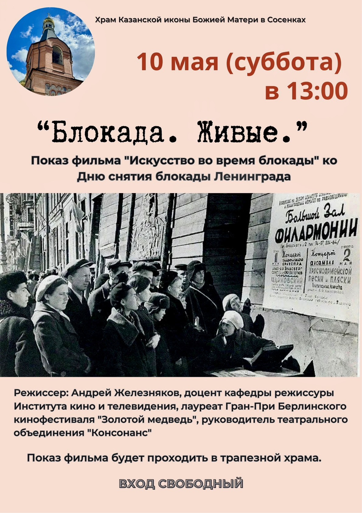 приглашает на показ фильма "Блокада. Живые" и встречу с режиссером Железняковым Андреем, который является прихожанином Казанского храма.