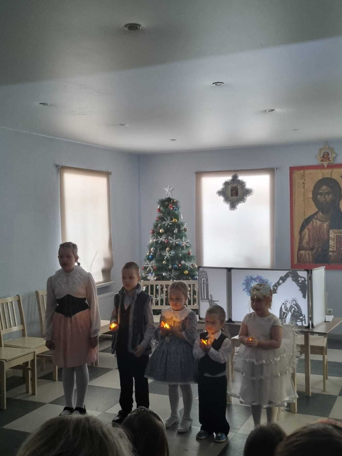 По традиции воспитанники воскресной школы с педагогами приготовили сценку о Рождестве Христовом. Но в этом году представление было необычное.